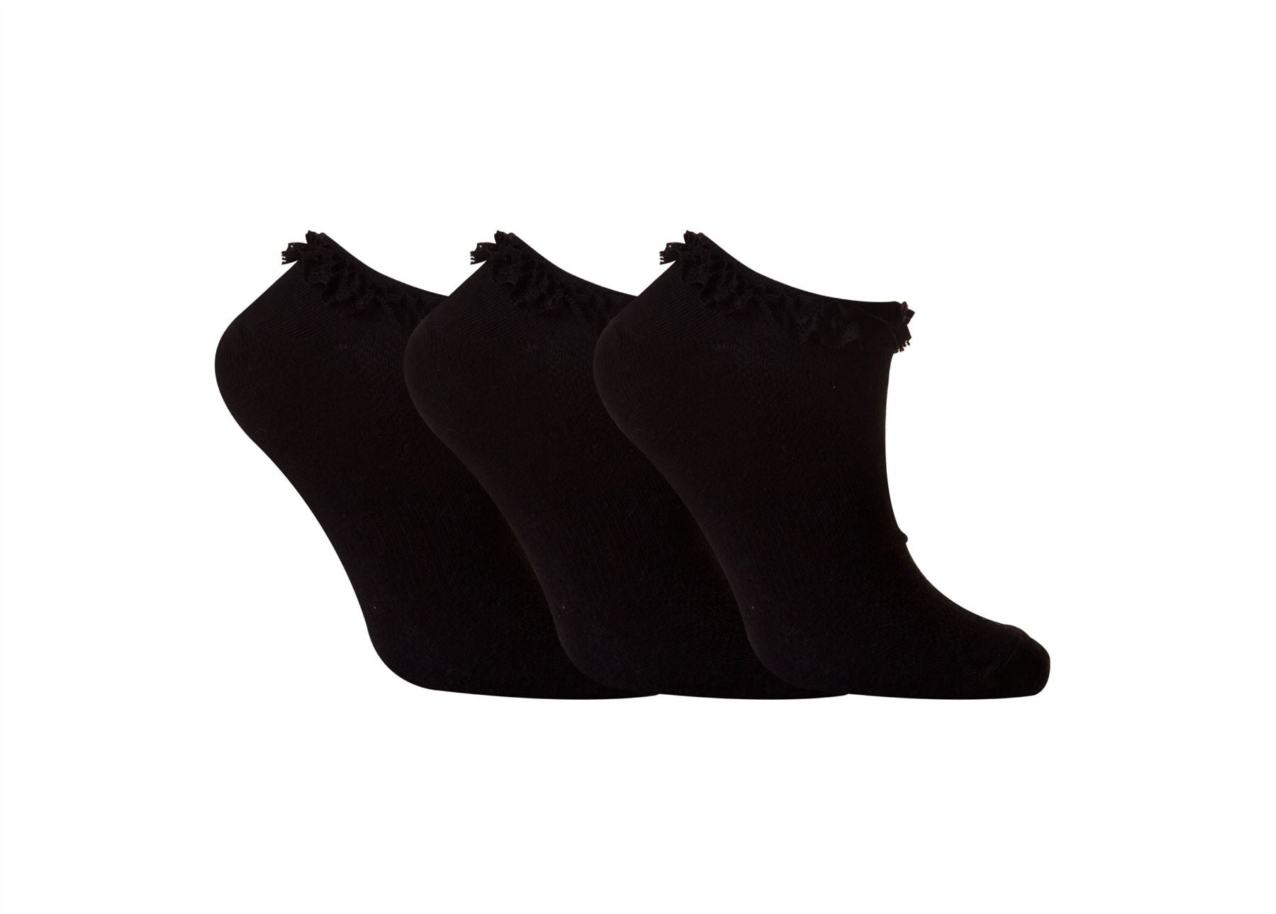 Ladies Fresh Feel Girls Lace Trainer Ankle Socks Black UK 4-7