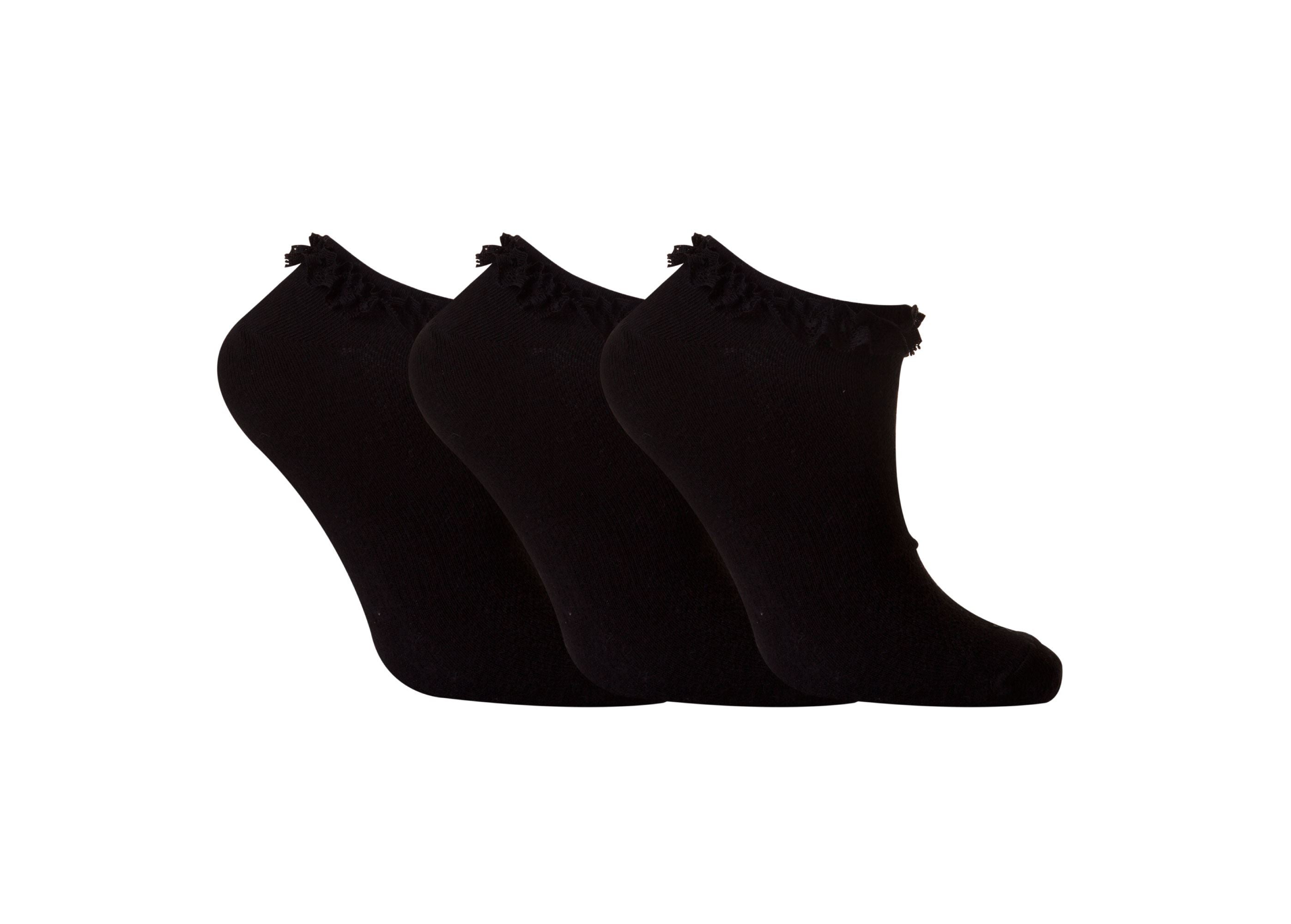 Ladies Fresh Feel Girls Lace White Black Trainer Socks Ankle UK 4-7