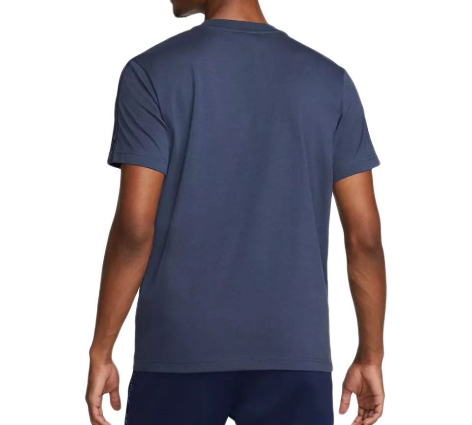 The Nike Sportswear Repeat Tee (Thunder Blue/Reflect Silver) offers a sleek, tech-inspired take on the classic logo shirt. Drenched in a deep, moody blue, this tee stands out with its repeating logo taping that catches the light, making it a perfect crossover piece for those who move between fitness and street fashion.